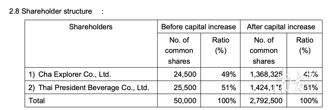 值得详实的是,泰国总统饮料有限公司是在6月下旬诞生的新公司,显着是专为这次往返拓荒的平台。真切分析鼓吹结构可见,投资是三家泰国头部企业的“组团作战”。